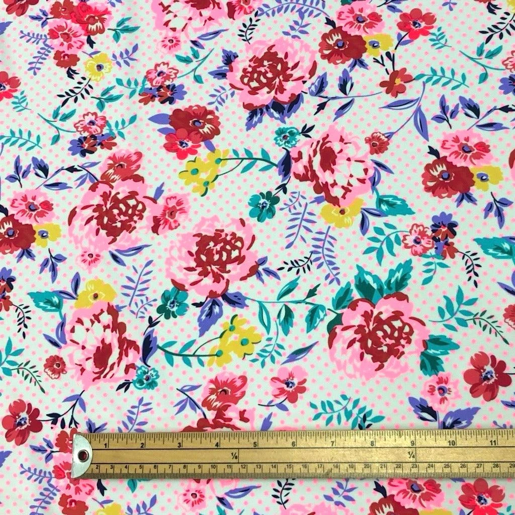 Multicolour Floral & Polka Dots on White Lycra Spandex Fabric – now available at the UK’s lowest price!