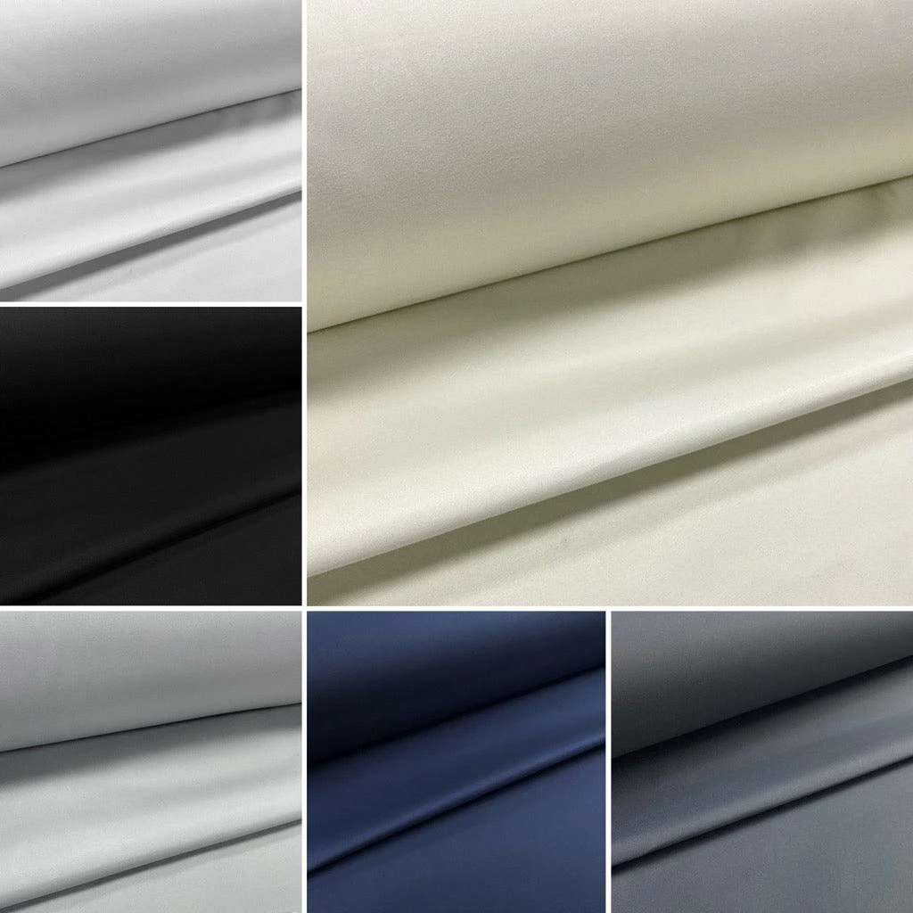 Our Blackout Thermal Curtain Lining Fabric is available in: Black, White, Ivory, Stone, Navy, Light Grey & Mid ‘Charcoal’ Grey.