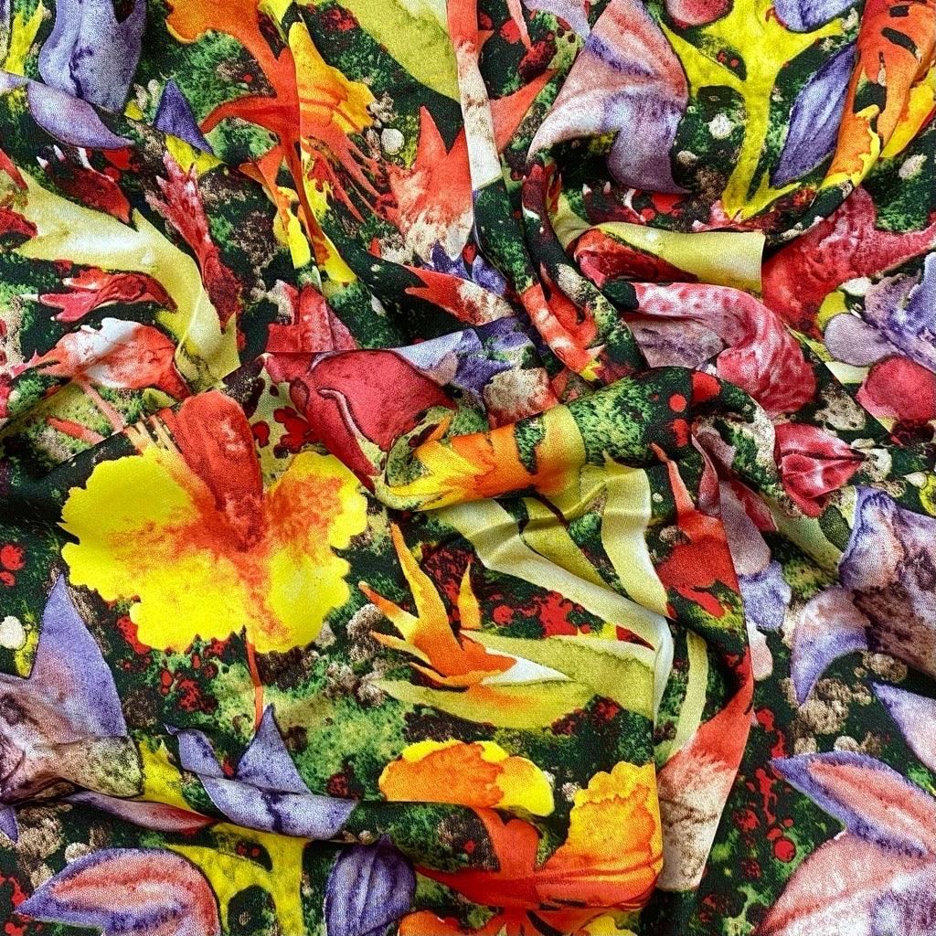 Bright Floral Garden Satin Fabric – now available at the UK’s lowest price!