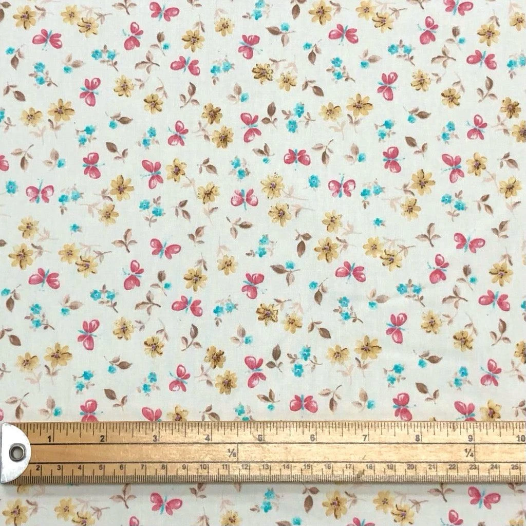 Butterflies and Flowers Rose and Hubble Cotton Poplin Fabric – now available at the UK’s lowest price!