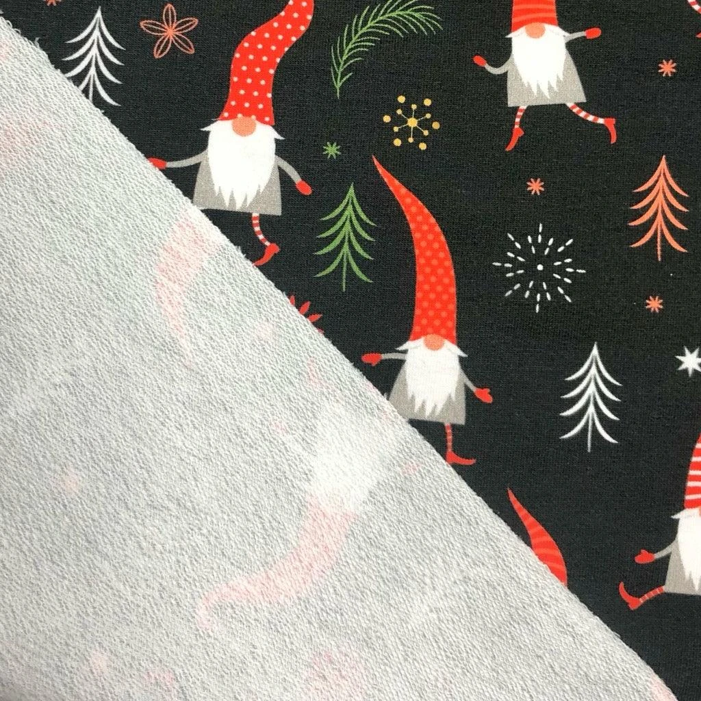 Xmas Gnomes on Black French Terry Fabric – available now at the UK’s lowest price!