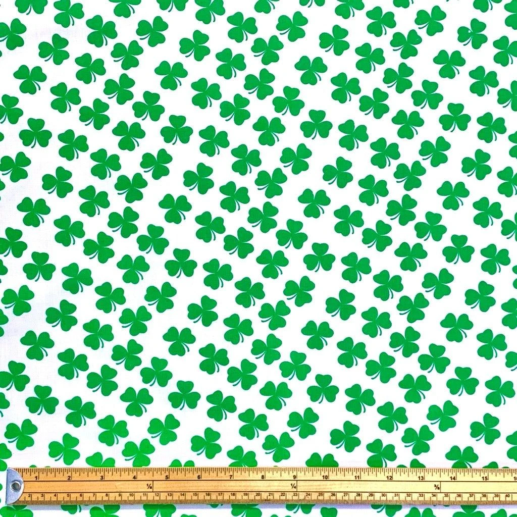 A lightweight polycotton fabric featuring clovers available in 2 colourways. Suitable for a range of dressmaking and craft projects!