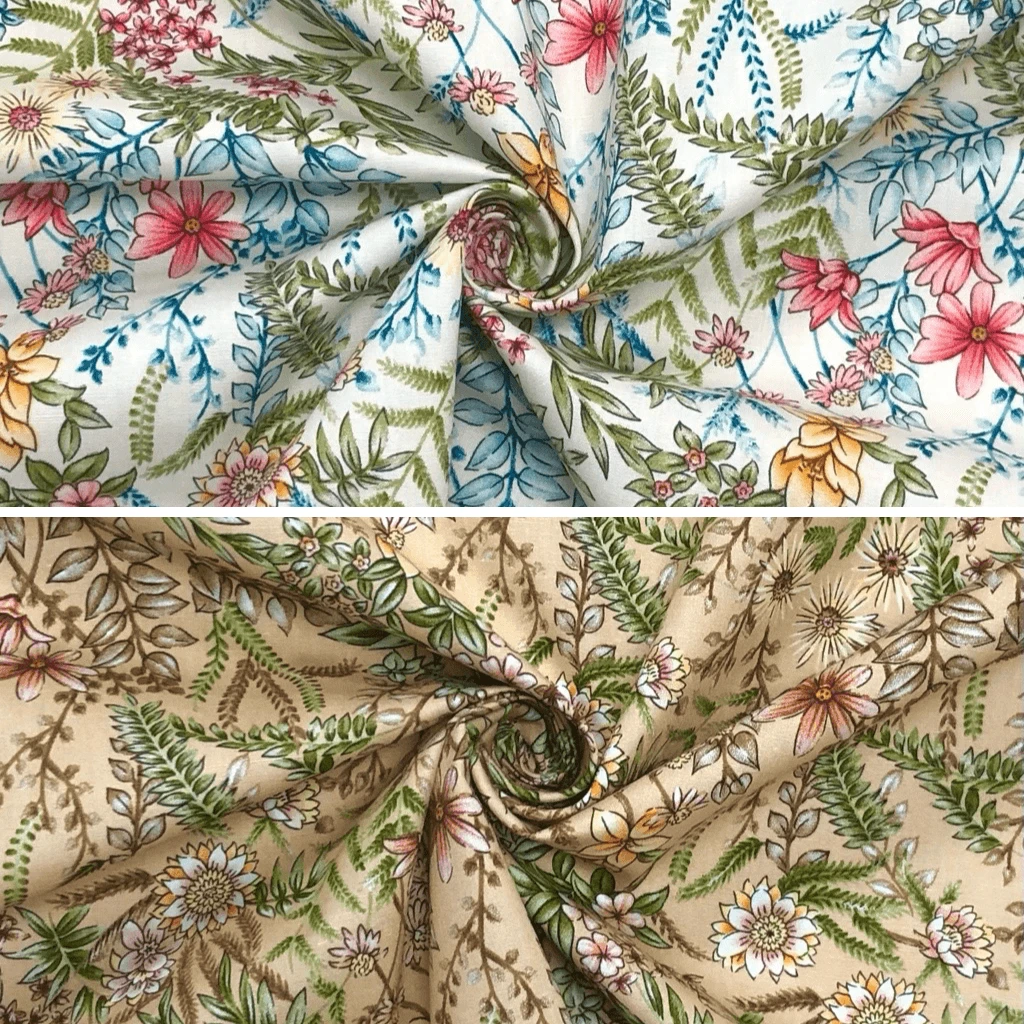 A Rose & Hubble cotton poplin fabric featuring an abstract flower design available in 2 colours. Suitable for tops, skirts, dresses, accessories and more!