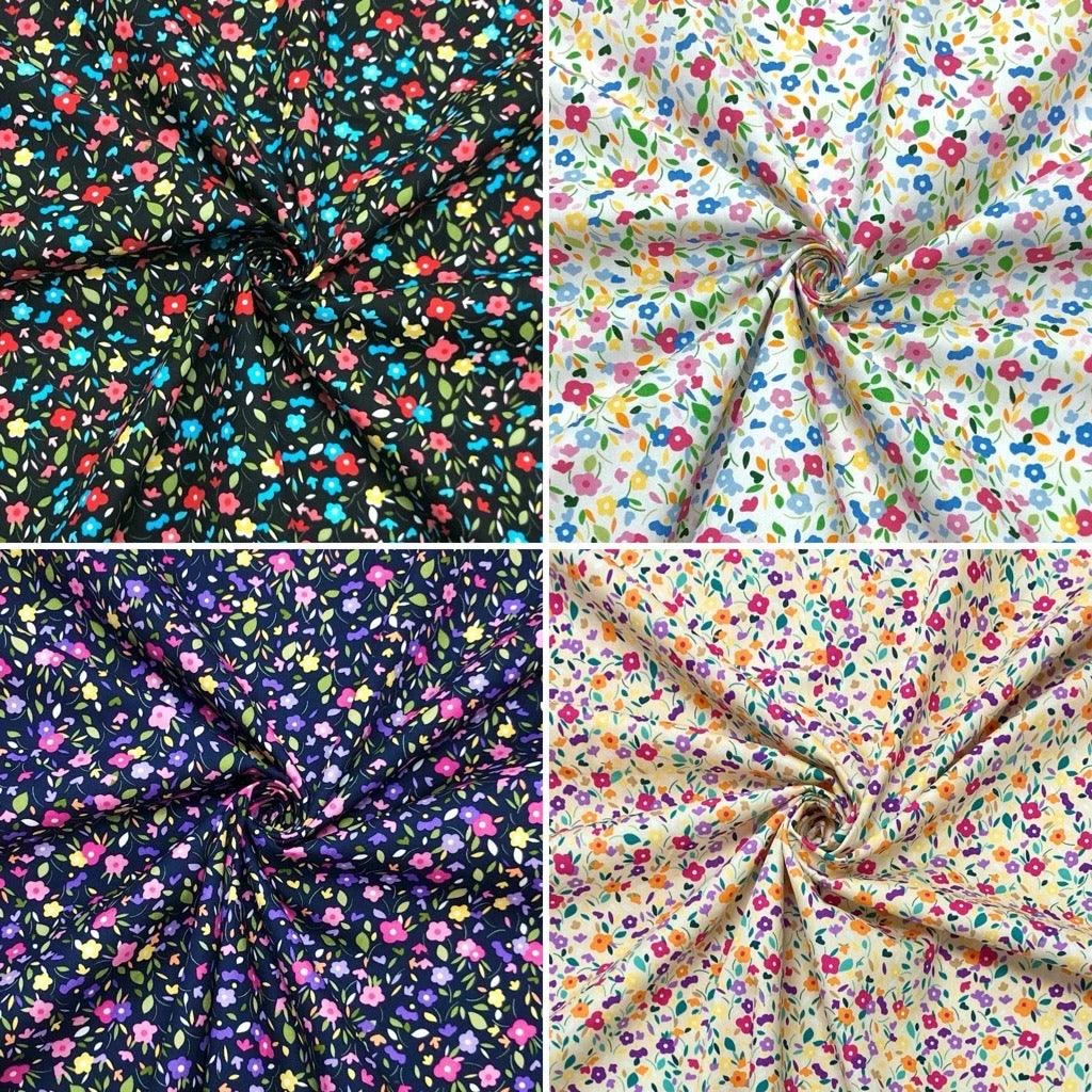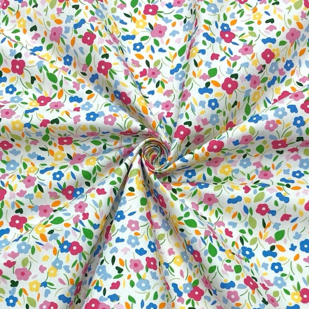 Colourful Mini Flowers Rose and Hubble Cotton Poplin Fabric – now available at the UK’s lowest price!