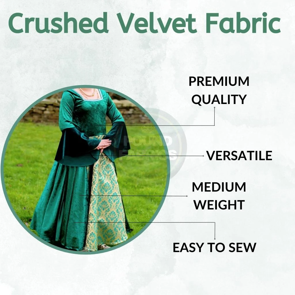 This medium to light weight 100% polyester quality crushed velvet velour fabric features a stretch in one direction and is available in an array of gorgeous colours. Our crushed velvet fabric is flexible, easy to work with and can be used for dresses, upholstery, cushions, crafts, soft furnishings, theatre and much more!