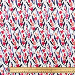A high quality, light-to-medium weight double gauze fabric made from a unique blend of rayon, linen, and cotton fibres, rather than being 100% cotton. This fabric features a wonderful flower pattern and has a natural crinkle effect. It is comfortable to wear, breathable, and has a wonderful drape making it suitable for tops, dresses, jumpsuits and many more dressmaking projects!