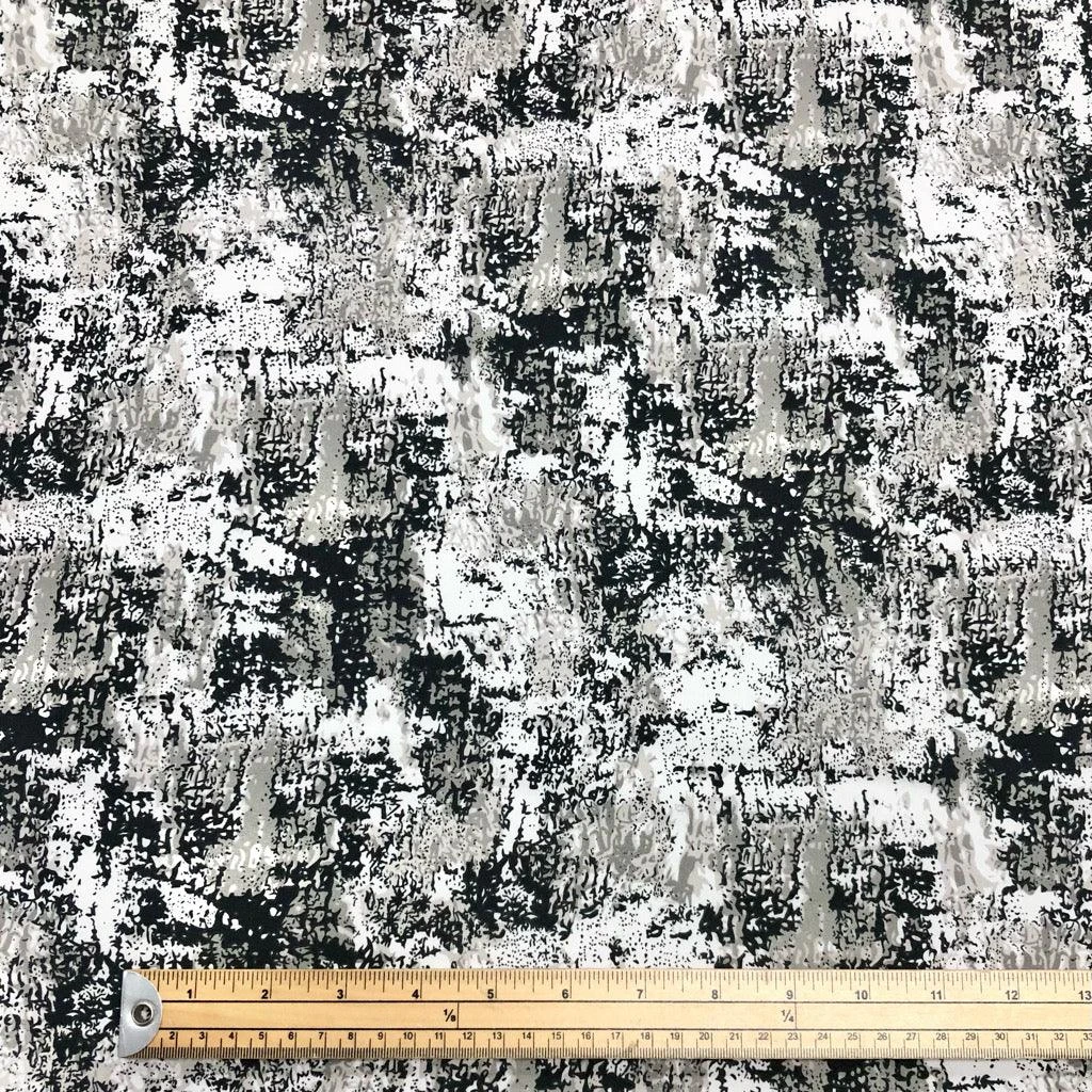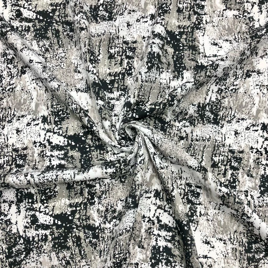 This woven polyester crepe fabric features a distressed print. This fabric would be suitable for a range of dress making projects, such as tops, dresses, trousers.