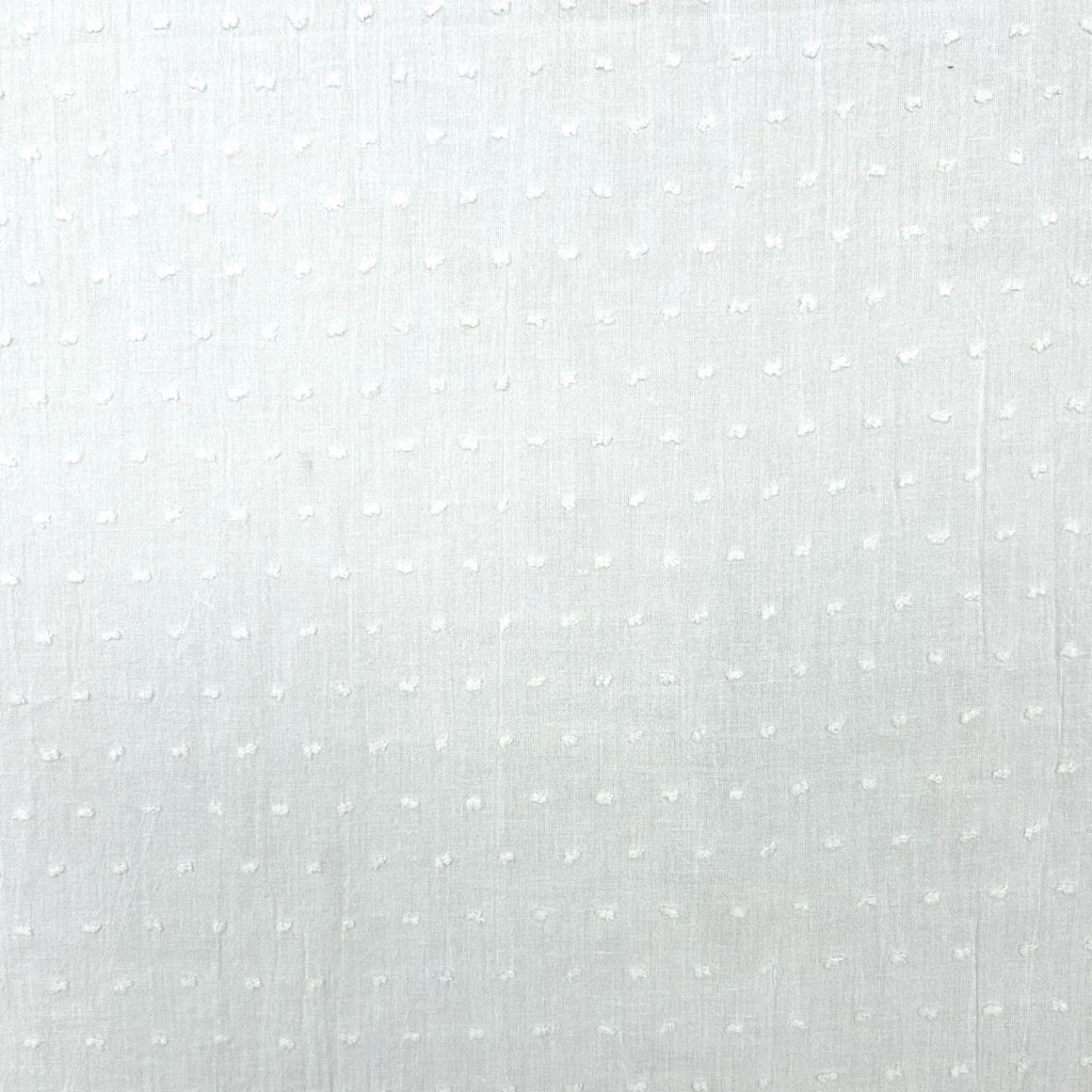 A premium Dobby Spot Cotton fabric by John Louden. Dobby Spot or Swiss Dot Cotton is a gorgeous woven fabric with even rows of dots stitched on to provide a distinctive look. This 100% cotton fabric is soft, lightweight, and breathable, making it perfect for summer dresses and blouses as well as craft and embroidery projects.