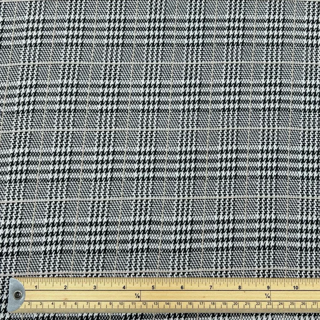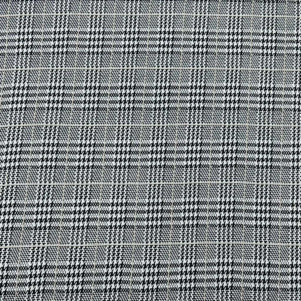 A medium-weight knit jersey fabric featuring a dogtooth checkered design with beige lines running through. This fabric would be suitable for dresses, tops, accessories and more!