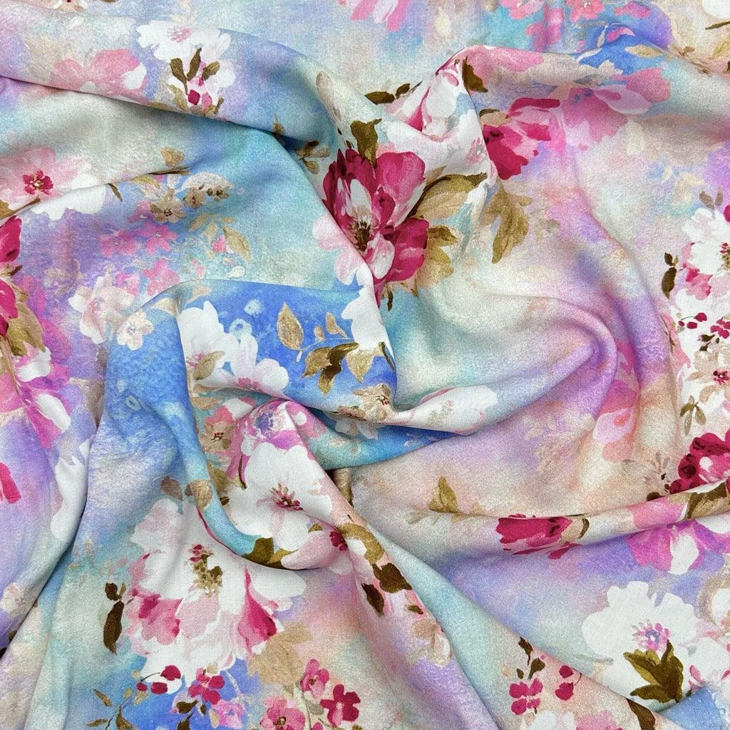 Dreamy Blooms Viscose Challis Fabric – now available at the UK’s lowest price!