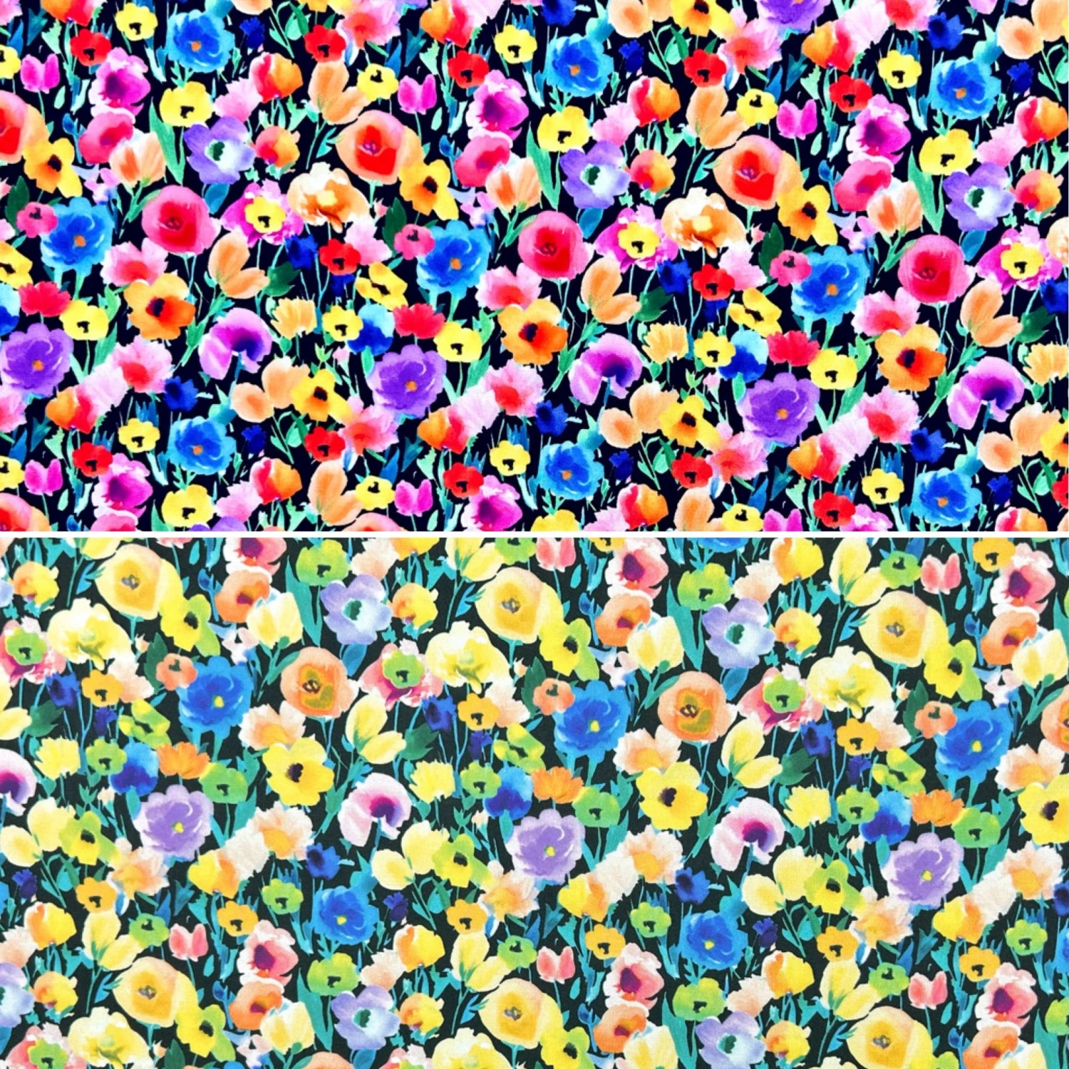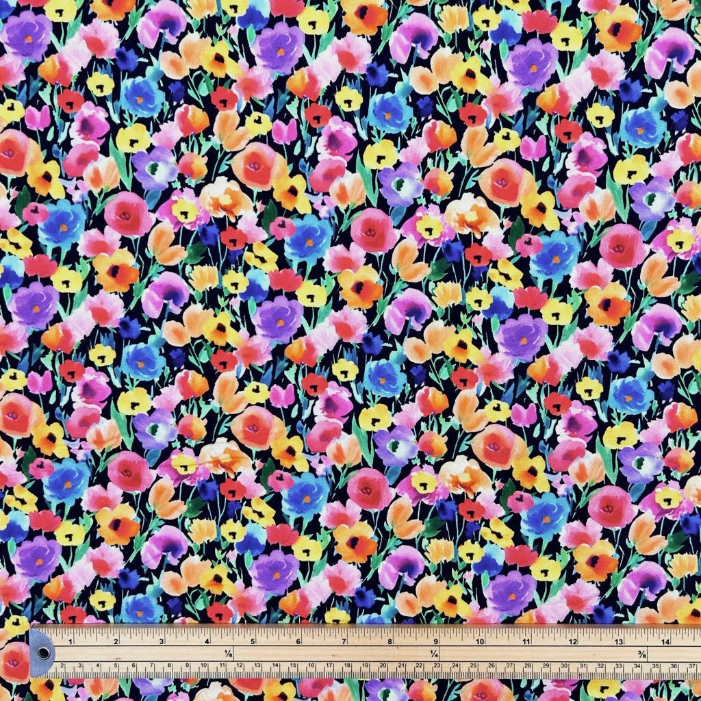 A high quality, digitally printed, viscose challis fabric featuring a flowers design. This fabric features a wonderful drape and would be perfect for summer tops, dresses, skirts, accessories and more! Available in 2 colours.
