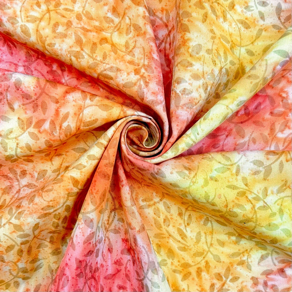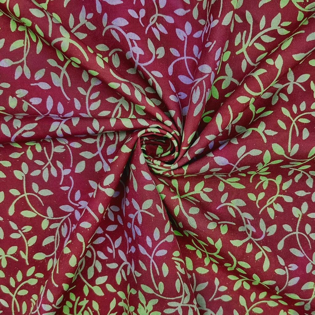 A high quality 100% cotton batik fabric featuring a leaves print. This John Louden fabric features a unique design with deep colours, hand printed by specialist craftsmen.