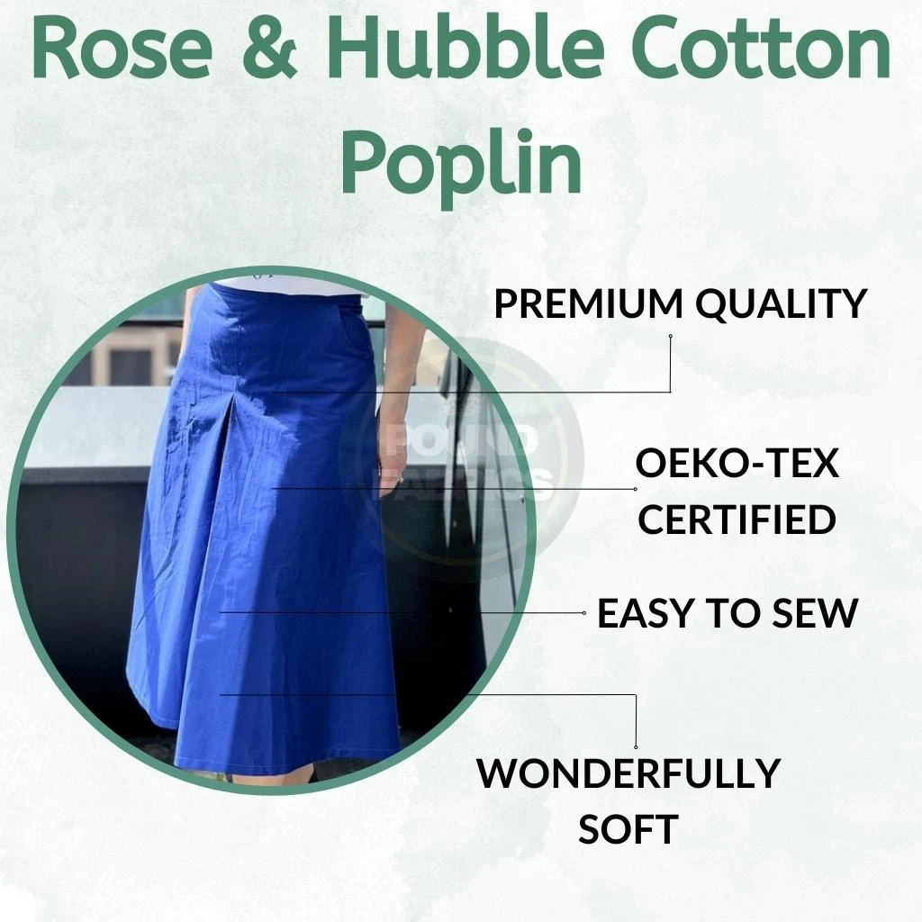 A high quality plain cotton poplin fabric which drapes well and is ideal for both craft and clothing. This 100% cotton poplin fabric has a beautiful drape and is a wonderful soft quality from Rose and Hubble. This cotton poplin fabric is easy to work with and care for. A great choice for dresses, trousers, skirts, blouses and more!