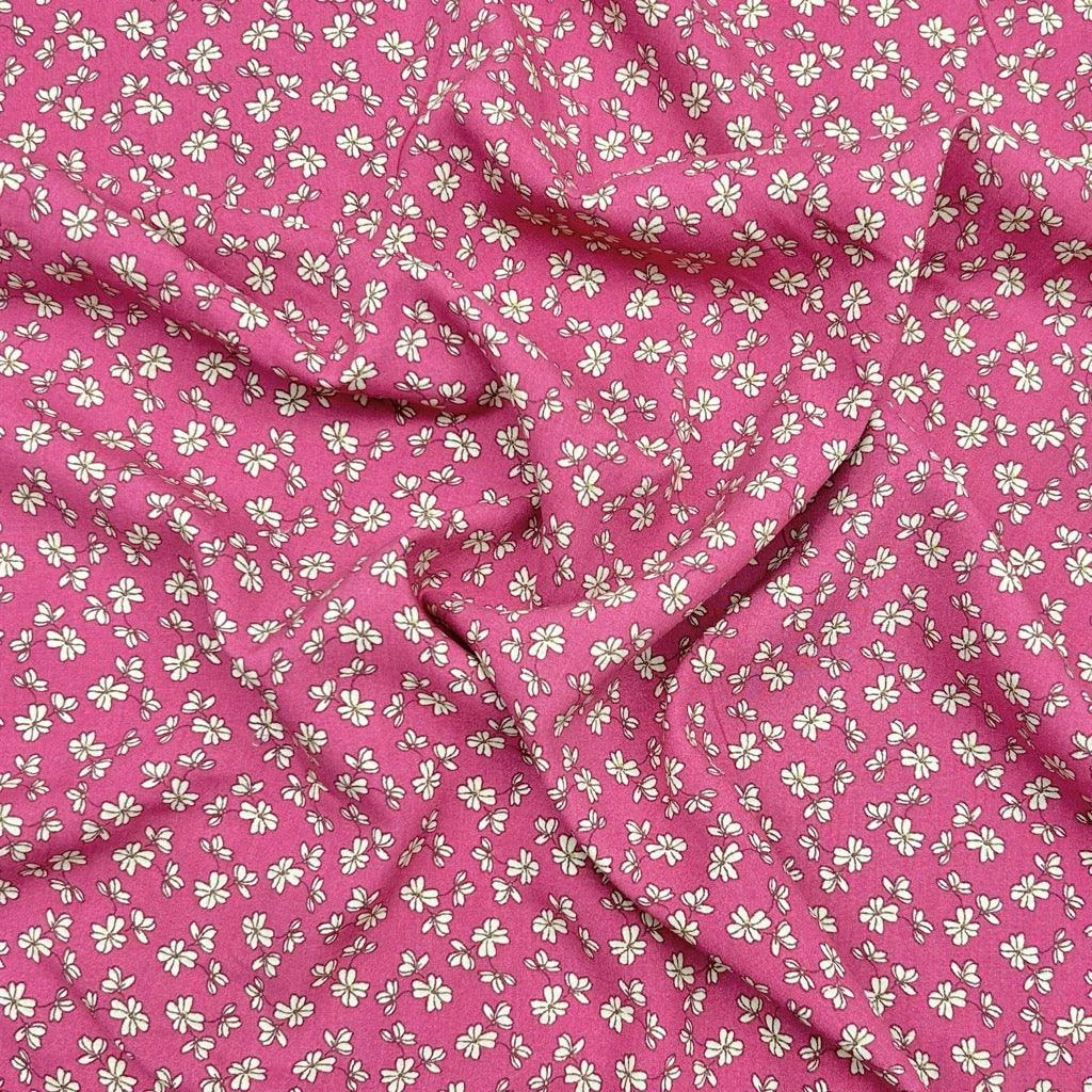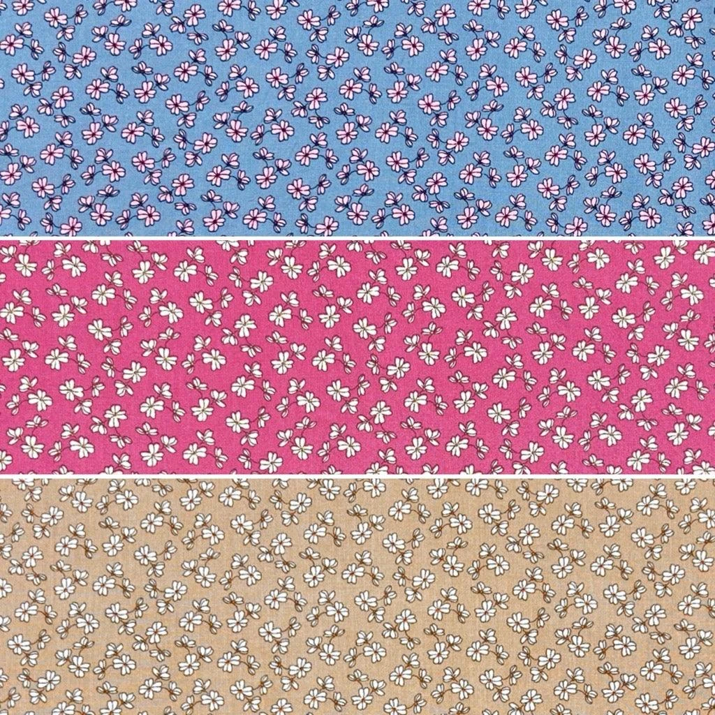 A viscose poplin fabric featuring a small flowers design, available in 3 colours. This soft and lightweight fabric features a gorgeous drape and would be suitable for tops, skirts, dresses, accessories and more! This fabric is heavier than our viscose challis fabrics.