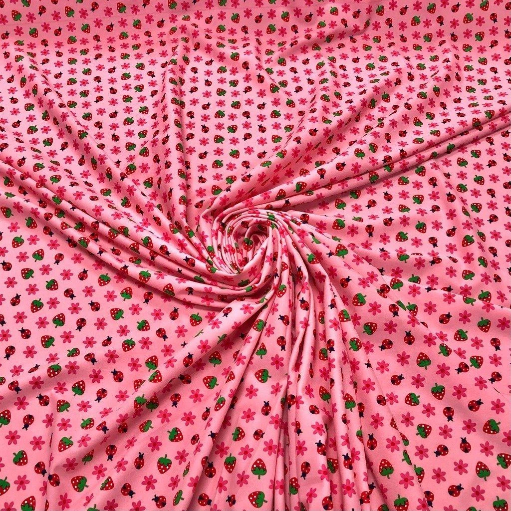 Mini Ladybirds and Strawberries on Pink Lycra Spandex Fabric 64cm PANEL – available now at the UK’s lowest price!