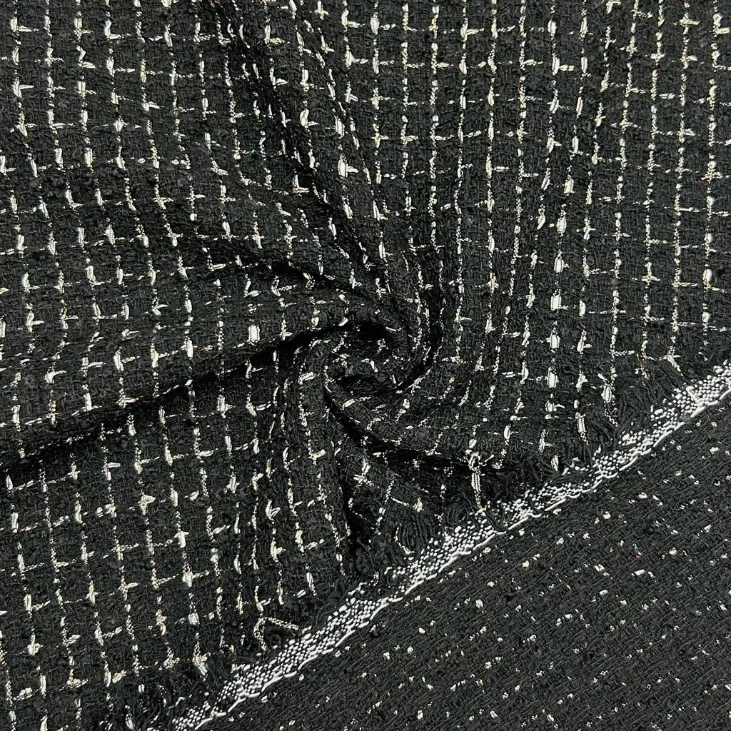 This lovely polyester/wool blend resembles the same features as more expensive fabrics whilst offering easy care convenience. As a boucle, this fabric has raised knotted yarn giving the fabric texture. It features gold lurex threads running through that add a wonderful touch of sparkle. Suitable for jackets, coats, dresses, skirts, bags and more! Available in 2 colours.