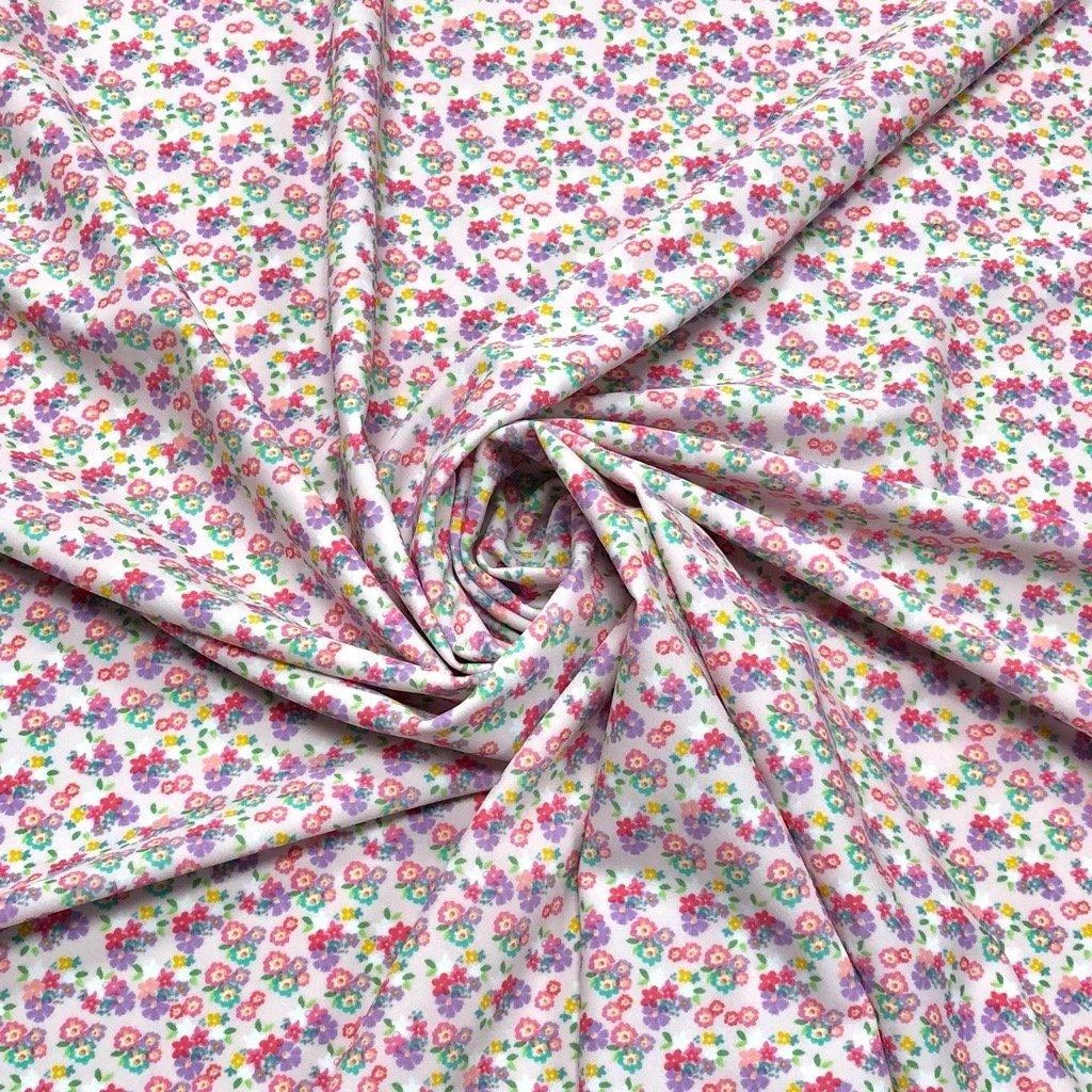 Multicolour Mini Floral on Baby Pink Lycra Spandex Fabric – available now at the UK’s lowest price!