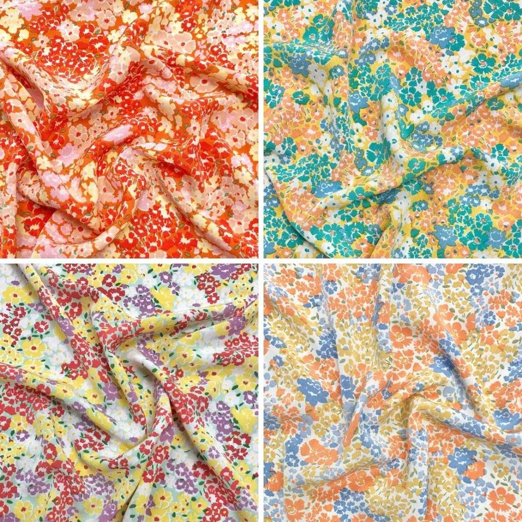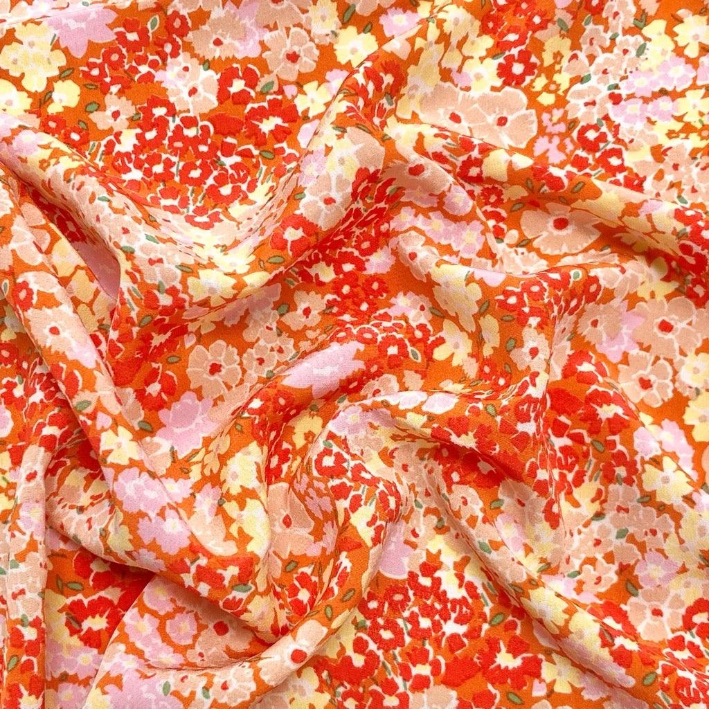Multicoloured Large and Small Floral Polyester Crepe Fabric – available now at the UK’s lowest price!