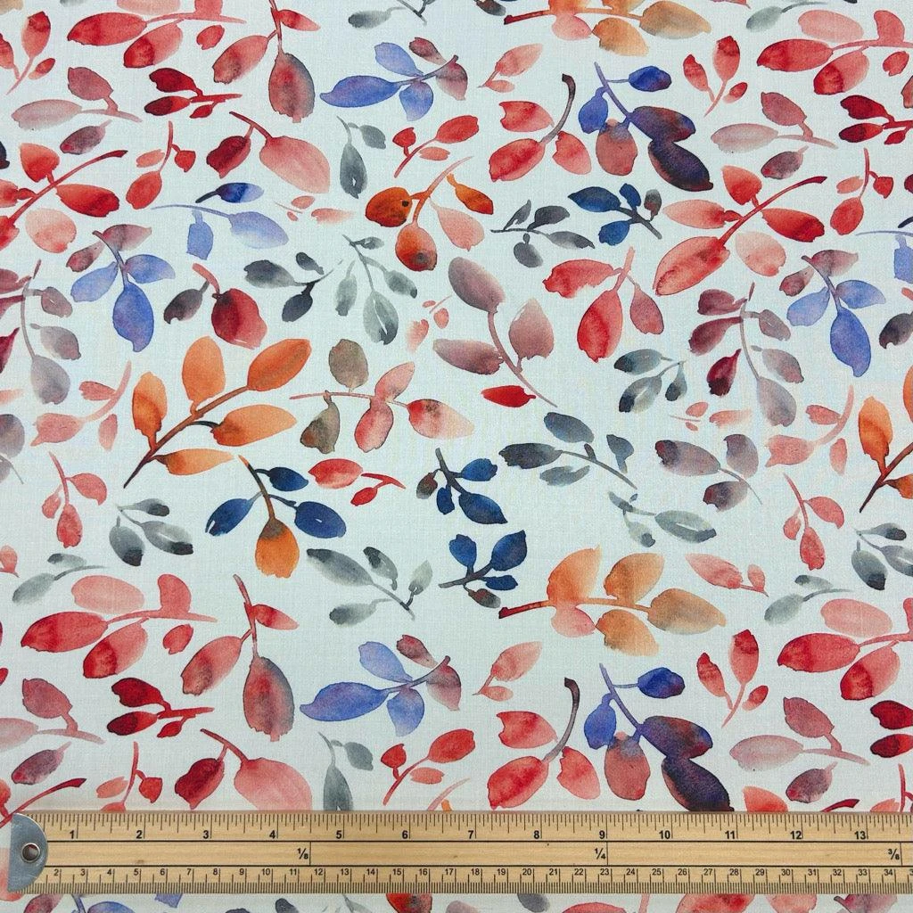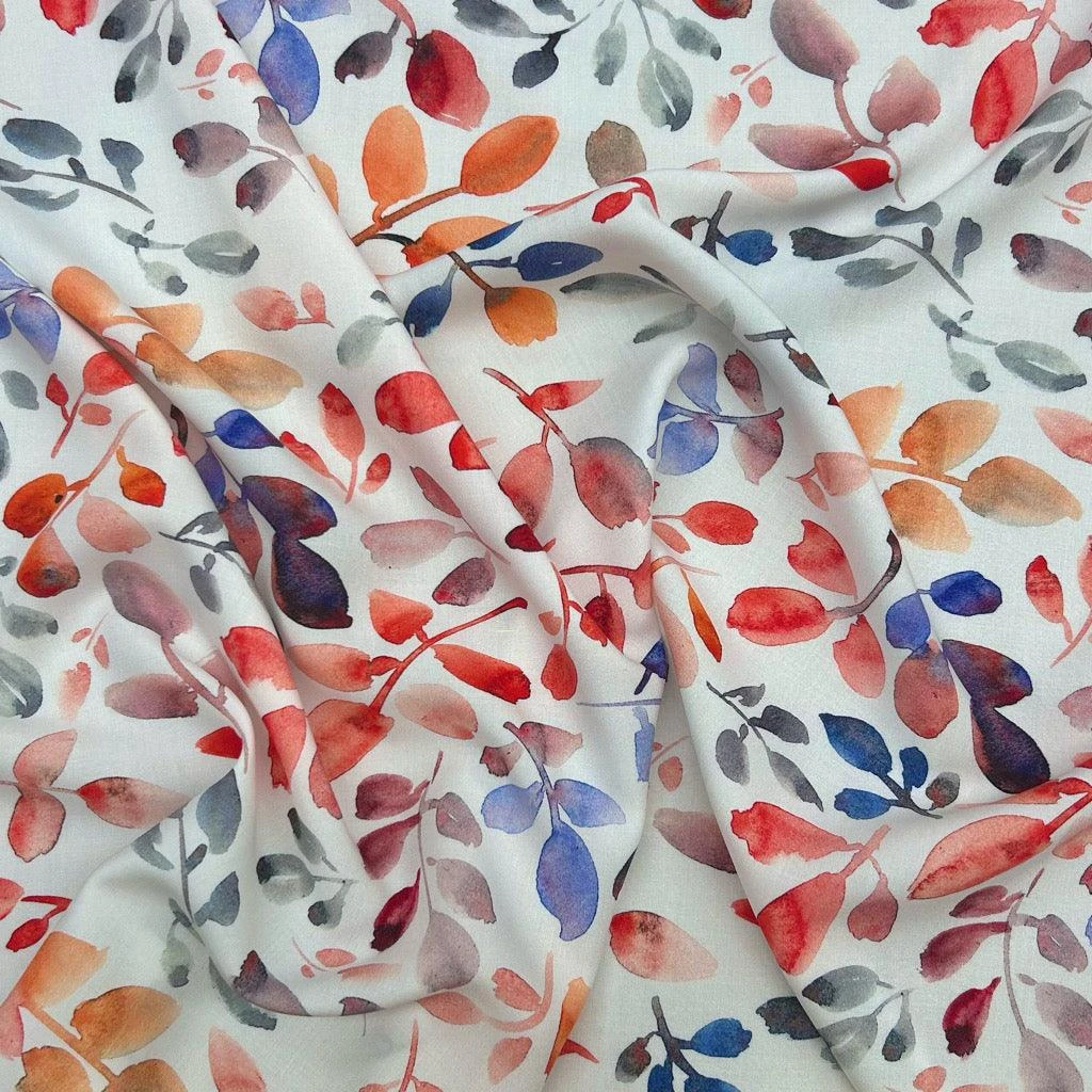 Multicoloured Leaves Viscose Challis Fabric – now available at the UK’s lowest price!