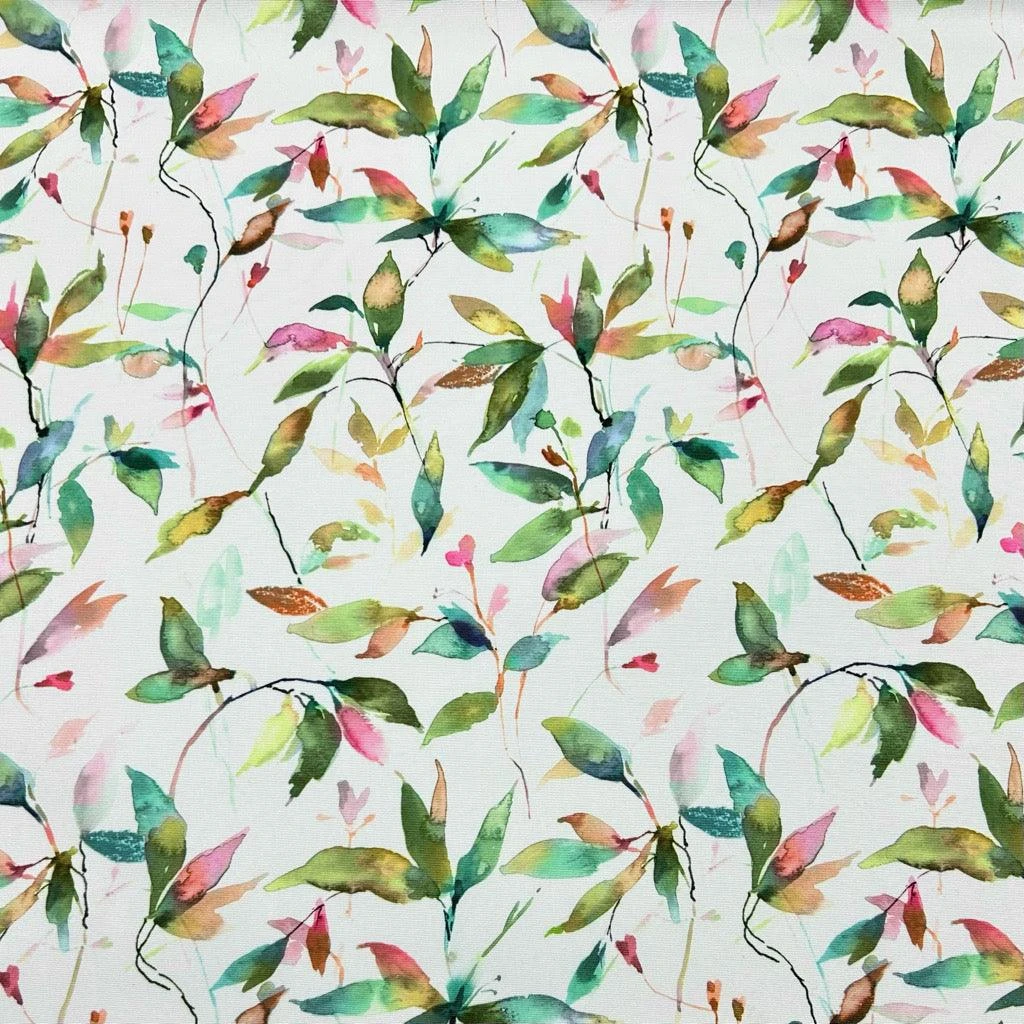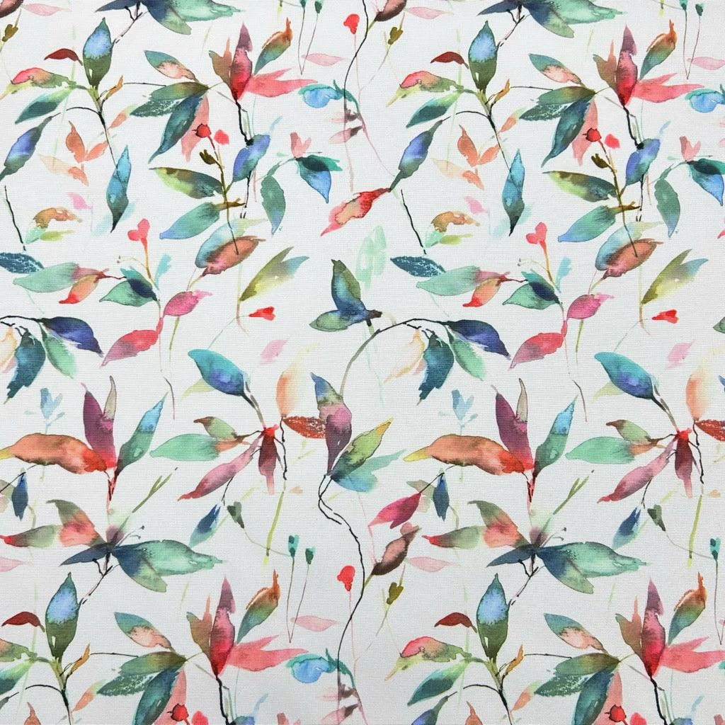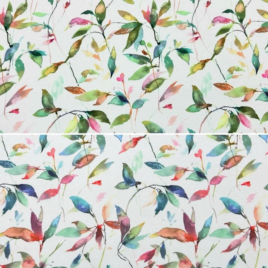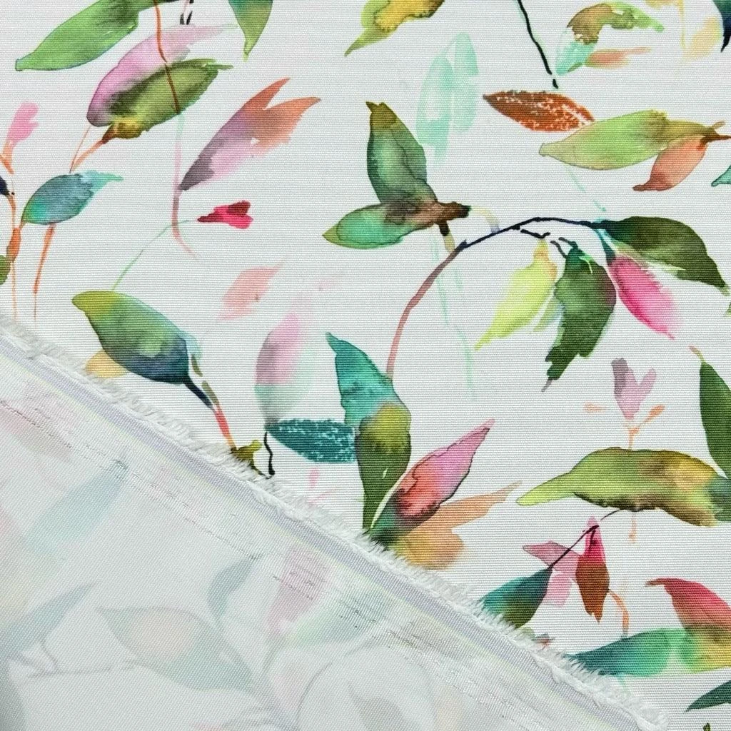 A tough & durable, digitally printed, medium-weight, PU coated outdoor fabric featuring a multicoloured leaves design on a white background available in 2 colour-ways. This fabric is UV-resistant and would be ideal for various outdoor projects including covering outdoor cushions, deckchairs, gazebos, beanbags and more. This fabric is water-resistant but not waterproof.