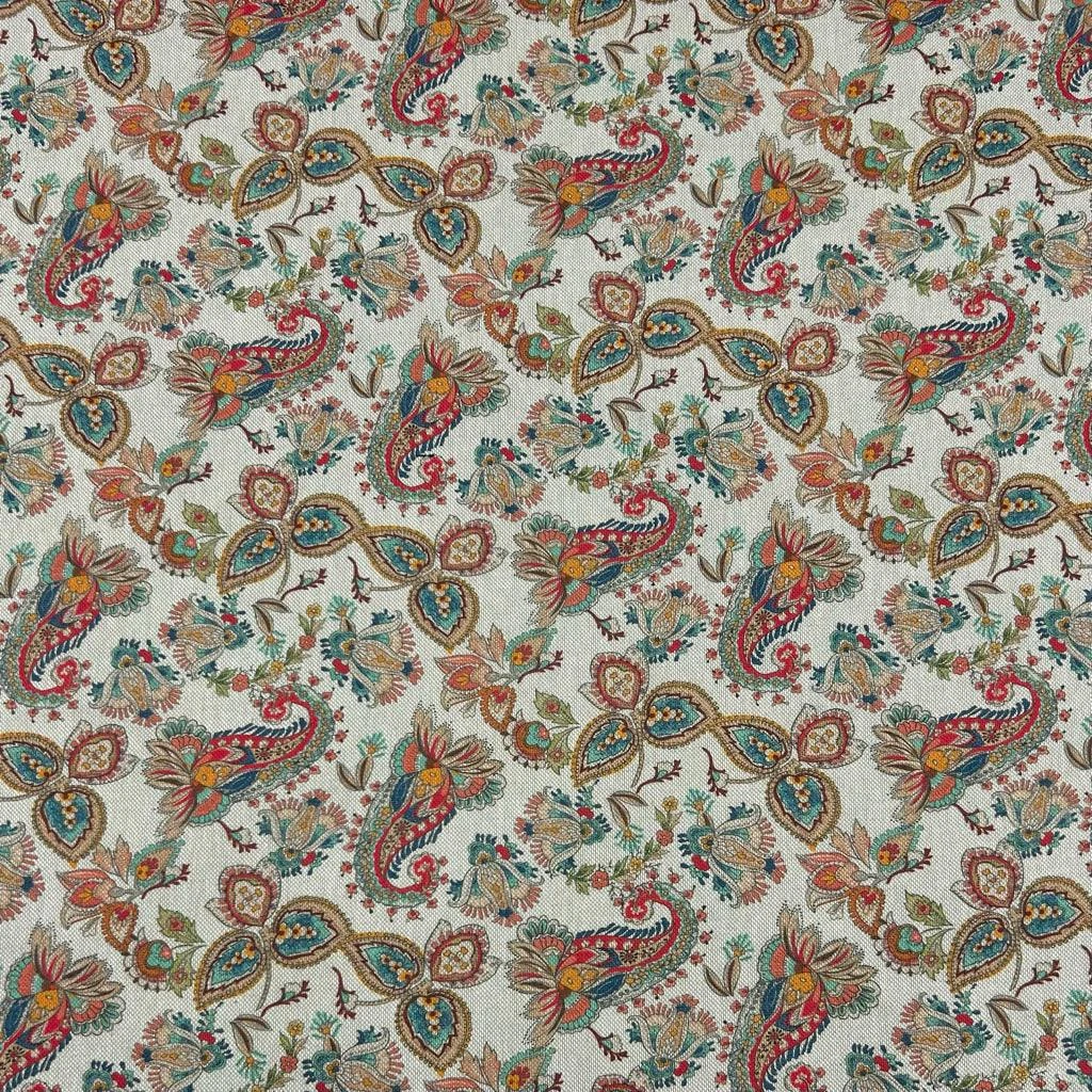 Multicoloured Paisleys Digital Linen Look Polycotton Fabric – available now at the UK’s lowest price!