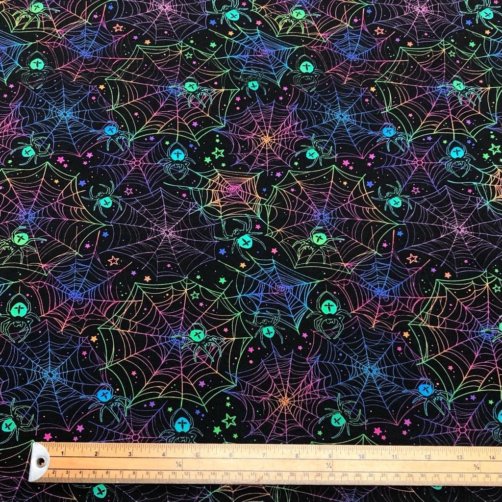 Multicoloured Spider Webs on Black French Terry Fabric – available now at the UK’s lowest price!