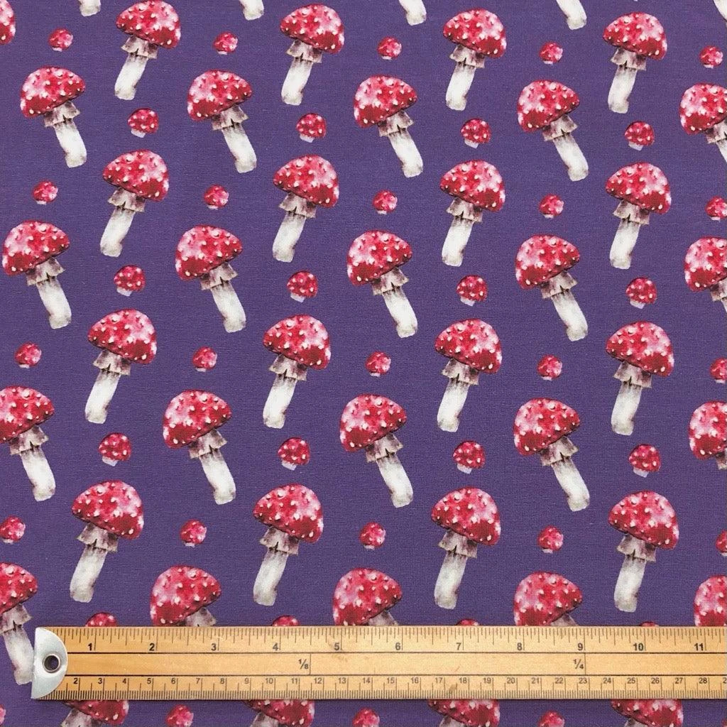 Mushrooms on Purple Digital French Terry Fabric – available now at the UK’s lowest price!