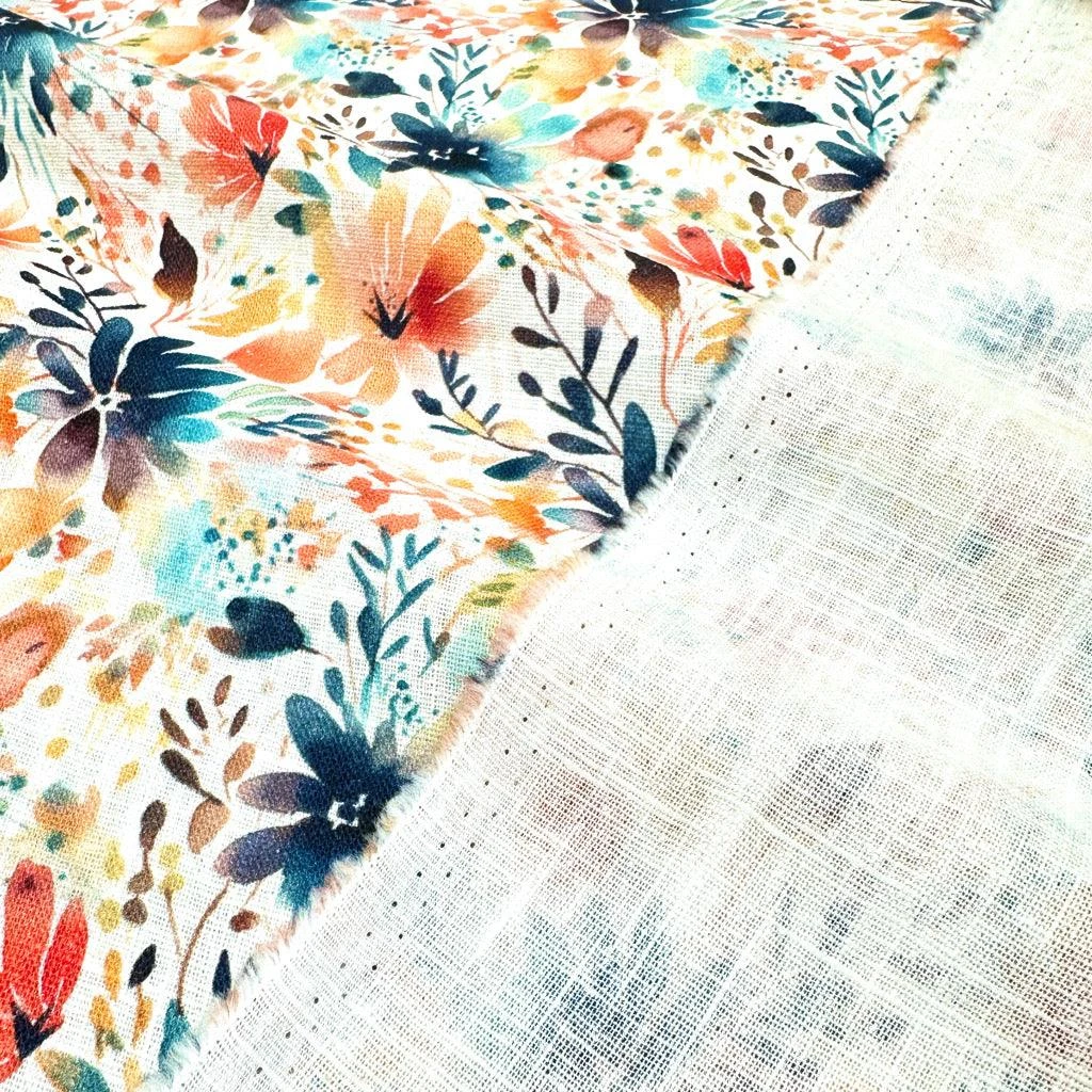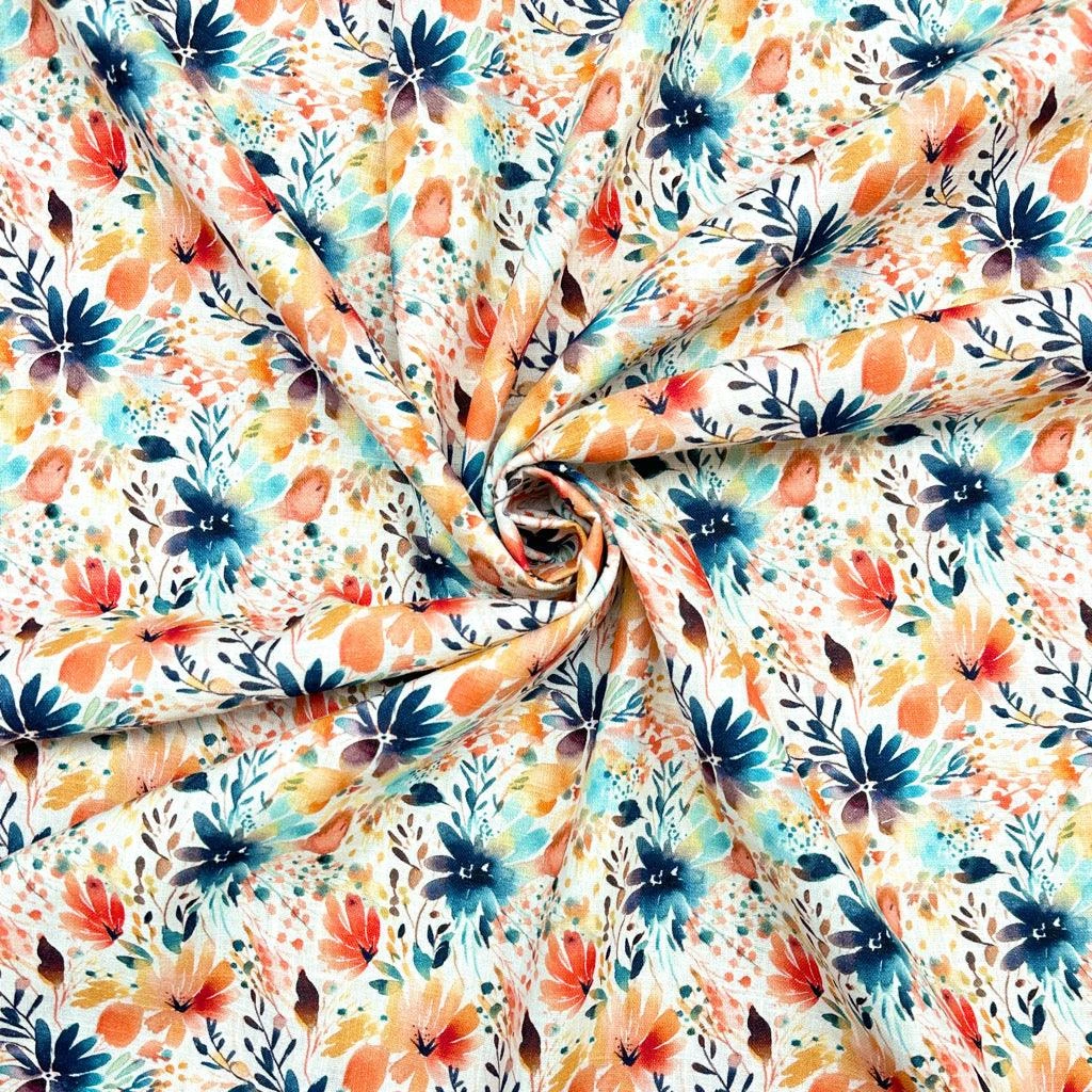 A linen and cotton blend fabric featuring a stunning digitally printed design. This fabric drapes well (not as much as our linen viscose) and doesn’t crease easily, it is easy to handle and would be ideal for dresses, tops, skirts, comfortable trousers and other summer clothing.