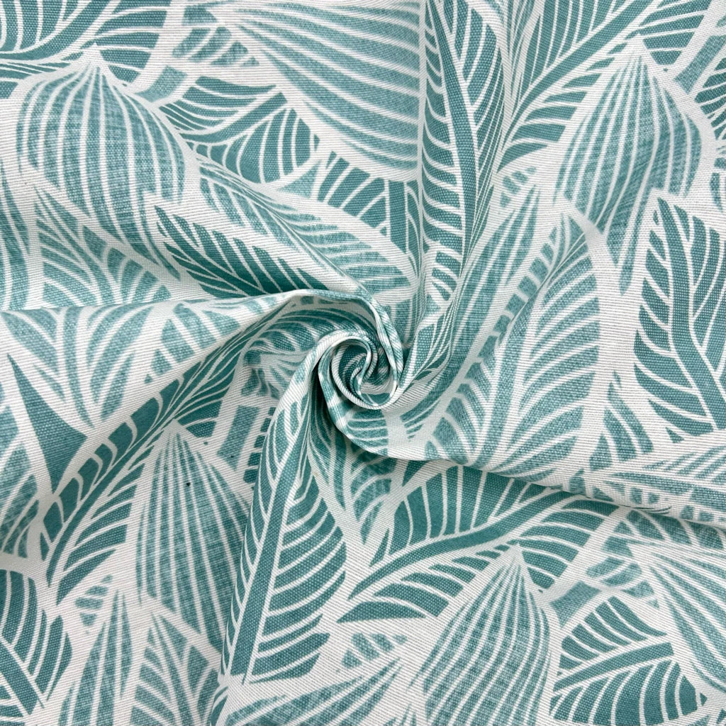 A high quality durable, medium-weight, water repellent fabric featuring a white, outlined leaves pattern, available in three colour-ways. This fabric is water repellent, UV resistant, anti-bacterial, anti fungal and colour-fast. This fabric is perfect for outdoor furnishing projects such as covering outdoor furniture, awnings and more!Â
