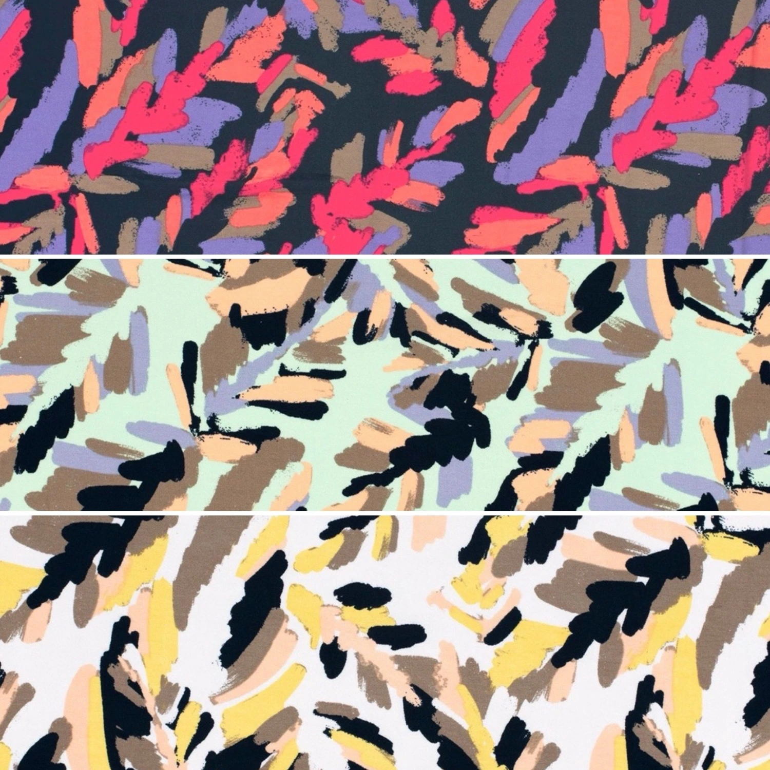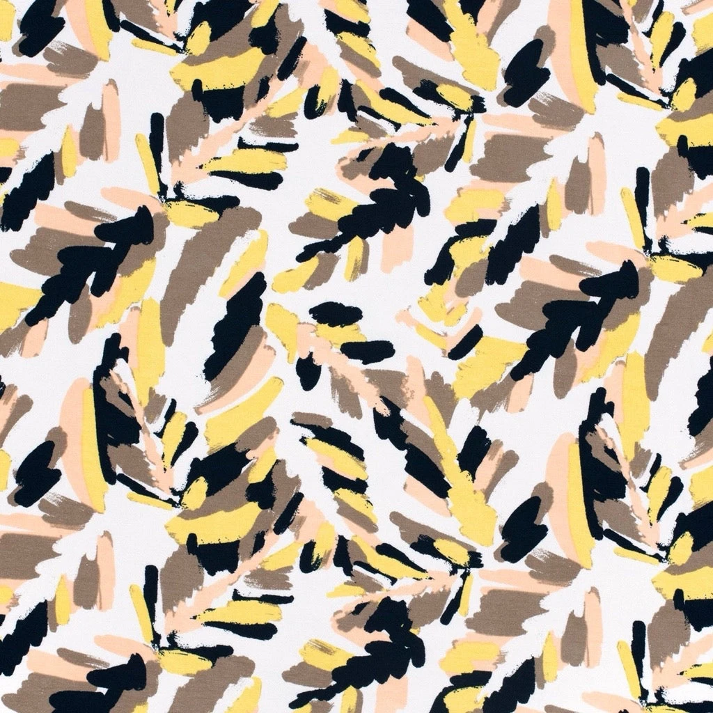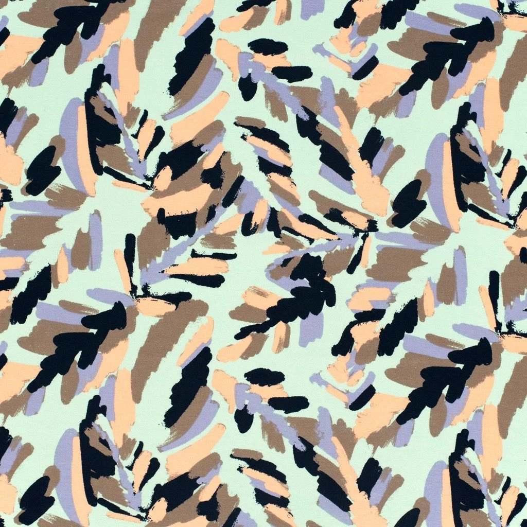 A lightweight viscose jersey fabric featuring an abstract design. This lightweight and breathable fabric features a gorgeous drape. Suitable for pyjamas, tops, leggings and many more dressmaking projects. Available in 3 colours.