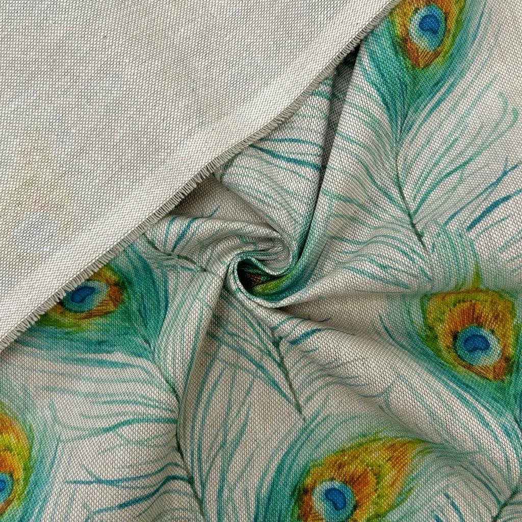 Peacock Feathers Digital Linen Look Polycotton Fabric – available now at the UK’s lowest price!