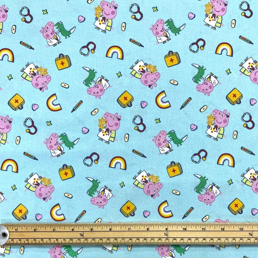 Peppa Pig on Sky Blue Cotton Fabric – now available at the UK’s lowest price!