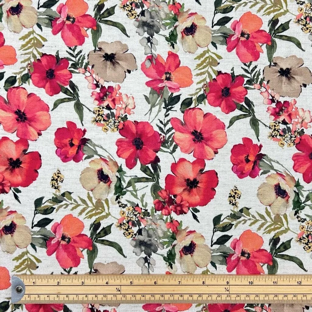 Pink Garden on Ivory Viscose Linen Fabric – available now at the UK’s lowest price!
