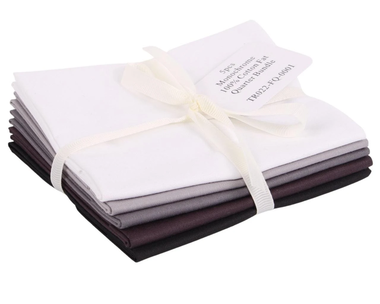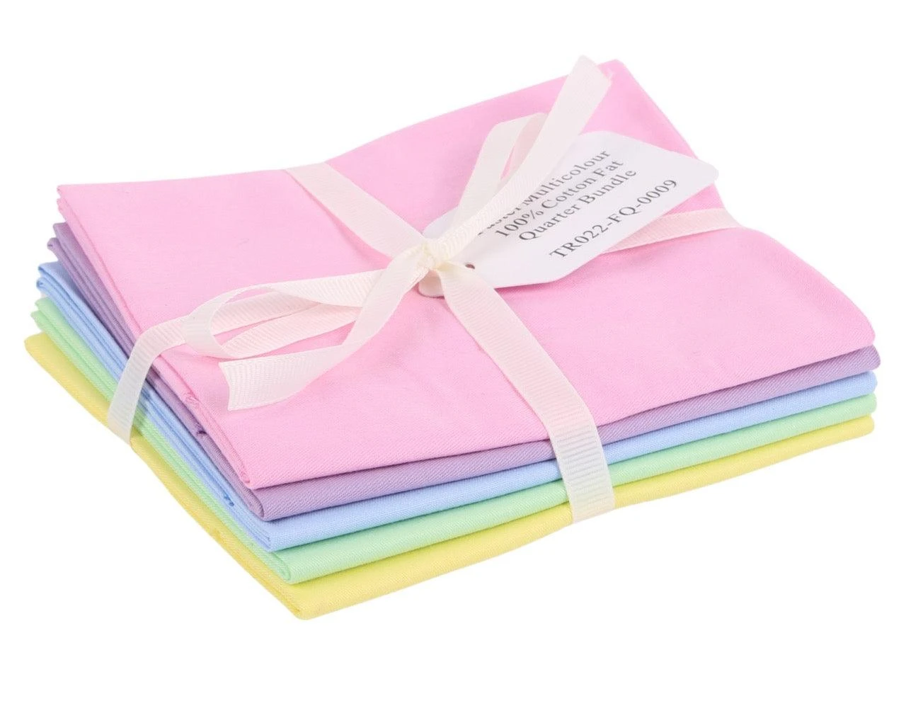 Each bundle contains 5 plain fat quarters. Each piece is 53cm x 46cm. Each bundle arrives tied with a ribbon. Suitable for a range of craft projects!
