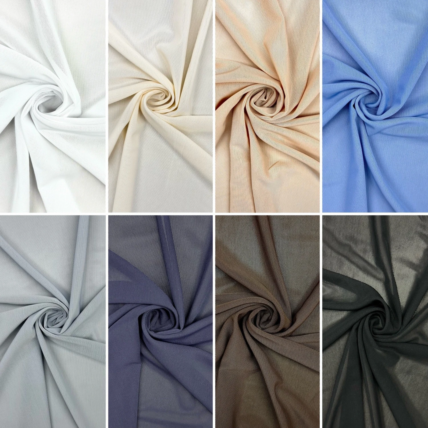 A high quality power mesh fabric available in 8 colours. This super soft material is semi-transparent, lightweight and has 4 way stretch. Our power mesh fabric contains 15% spandex, giving it much greater stretch and recovery compared to cheaper alternatives.Â