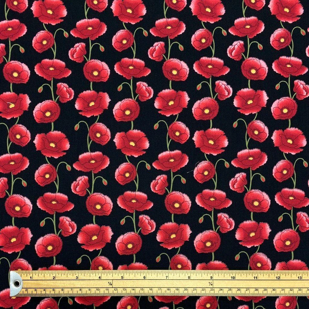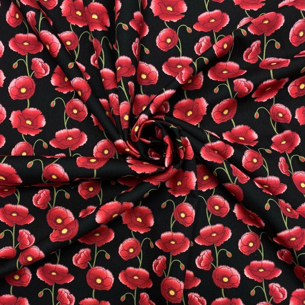 A Rose & Hubble cotton poplin fabric featuring a poppy print available in 3 colours. Suitable for tops, skirts, dresses, accessories and more!