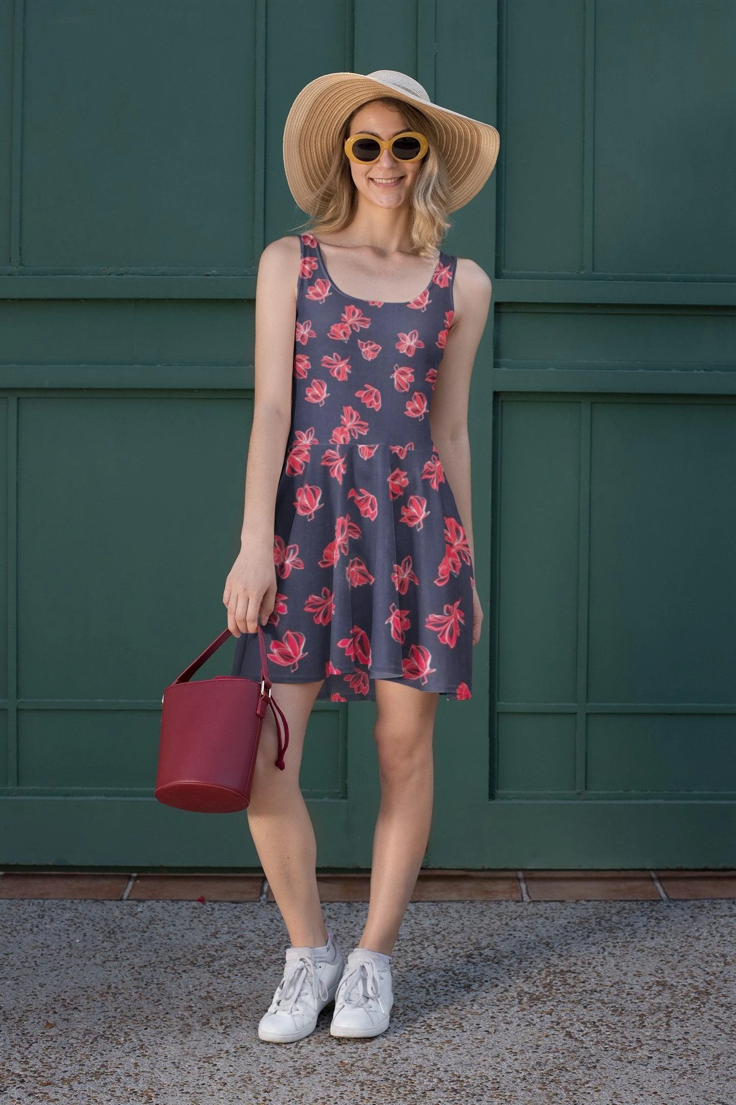 Red Floral on Navy Viscose Challis Fabric – now available at the UK’s lowest price!