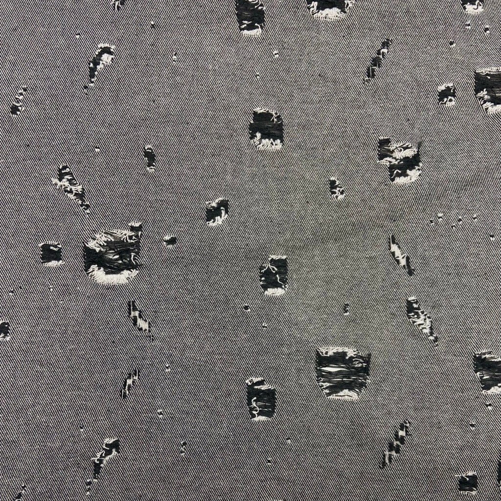 This medium-weight denim fabric features distressed patches in its design, adding a unique touch to the fabric making it perfect for a pair of ripped jeans. Available in 8 colours.