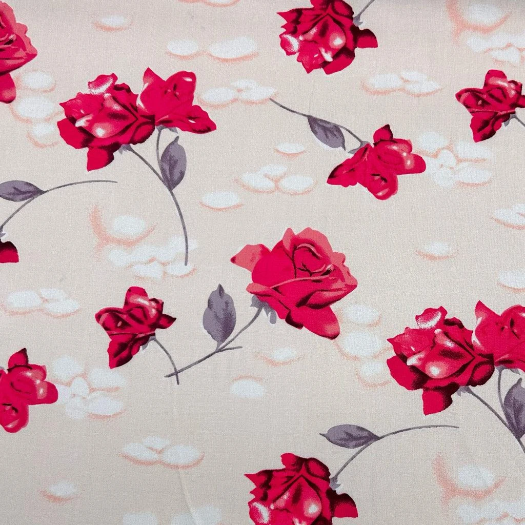 Roses and Spots Viscose Challis Fabric – now available at the UK’s lowest price!