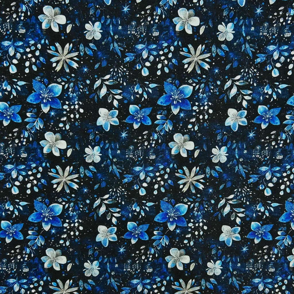 A digitally printed French Terry fabric featuring a flowers design. French Terry, also known as loop back jersey has small loops/piles of yarn on the reverse side, giving it extra comfort and warmth. This fabric has 4 way stretch and would be suitable for sweatshirts, hoodies, pyjamas, tops, leggings and more!