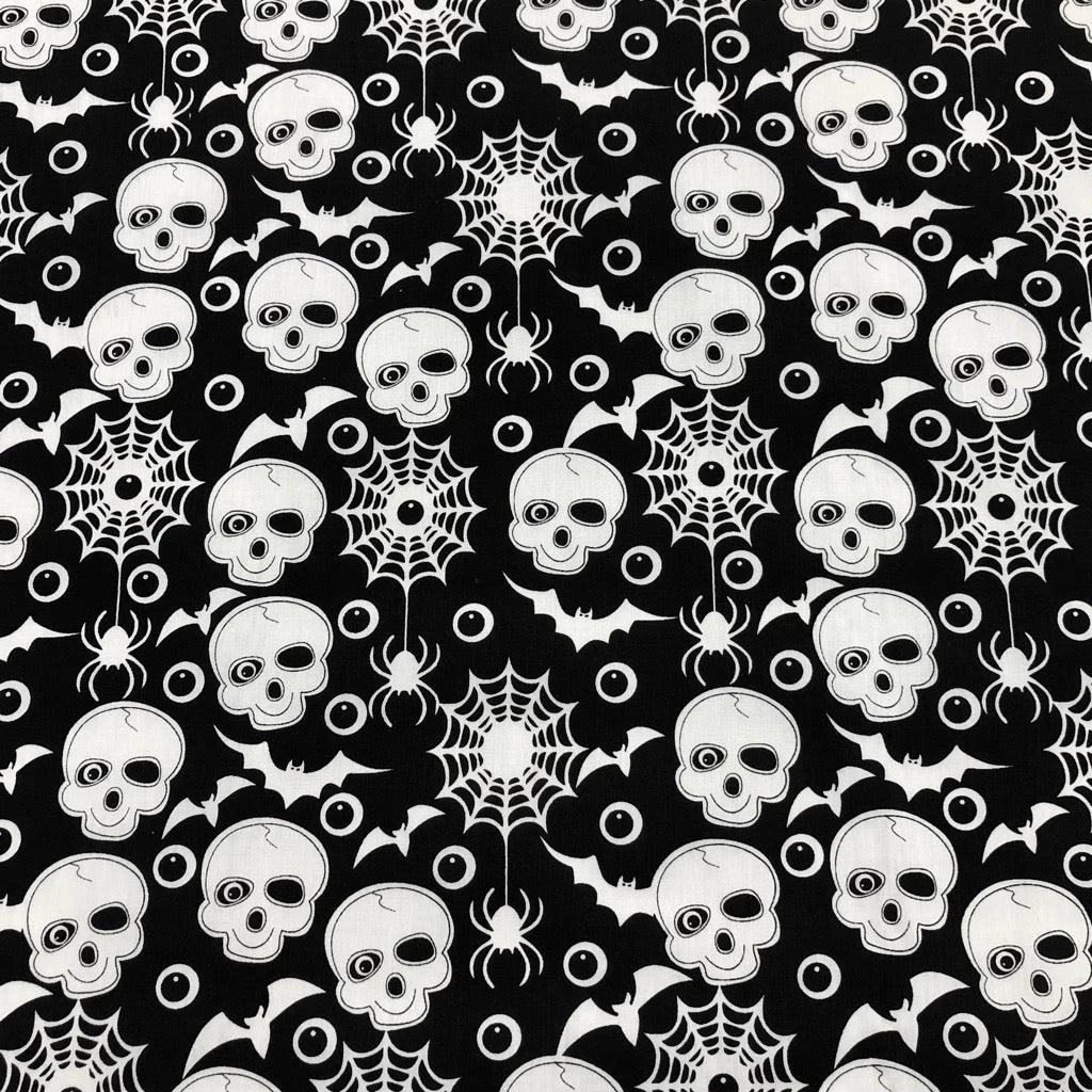 Skulls and Bats Halloween Polycotton Fabric – available now at the UK’s lowest price!