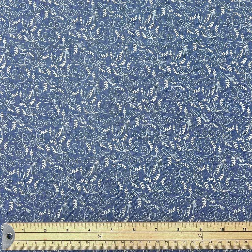 Small Vines Chambray Denim Fabric – available now at the UK’s lowest price!