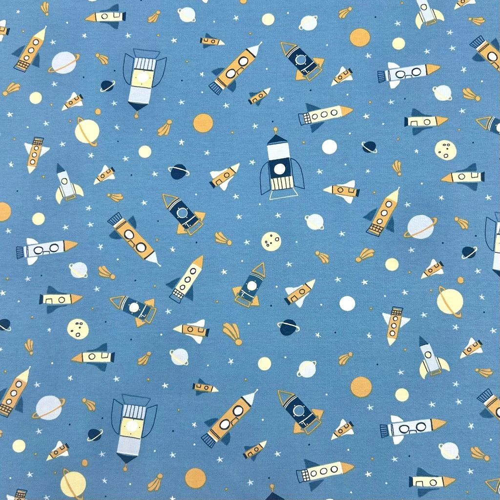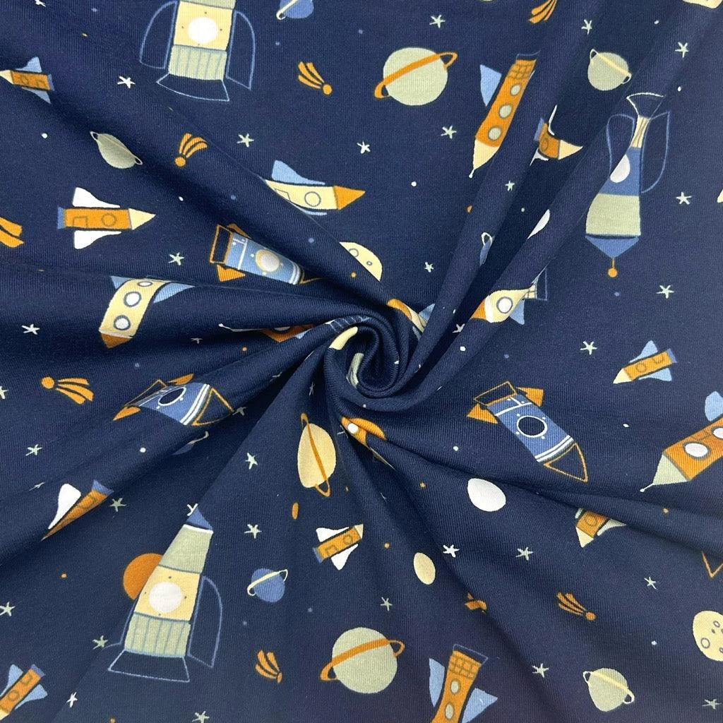 Space Rockets Cotton Jersey Fabric – now available at the UK’s lowest price!