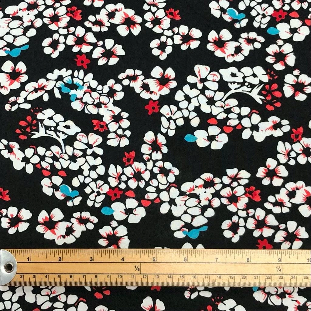 White, Red and Blue Flowers on BlackĀ Viscose Fabric – now available at the UK’s lowest price!